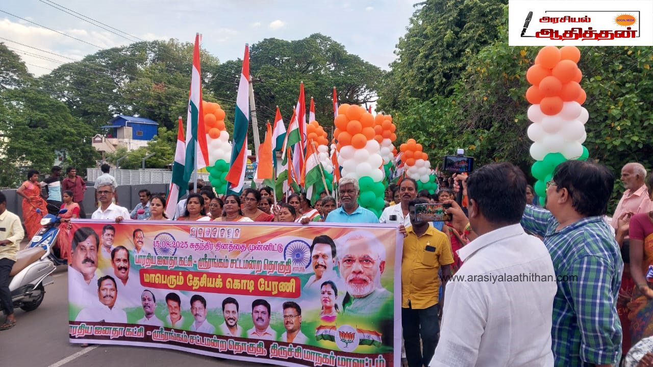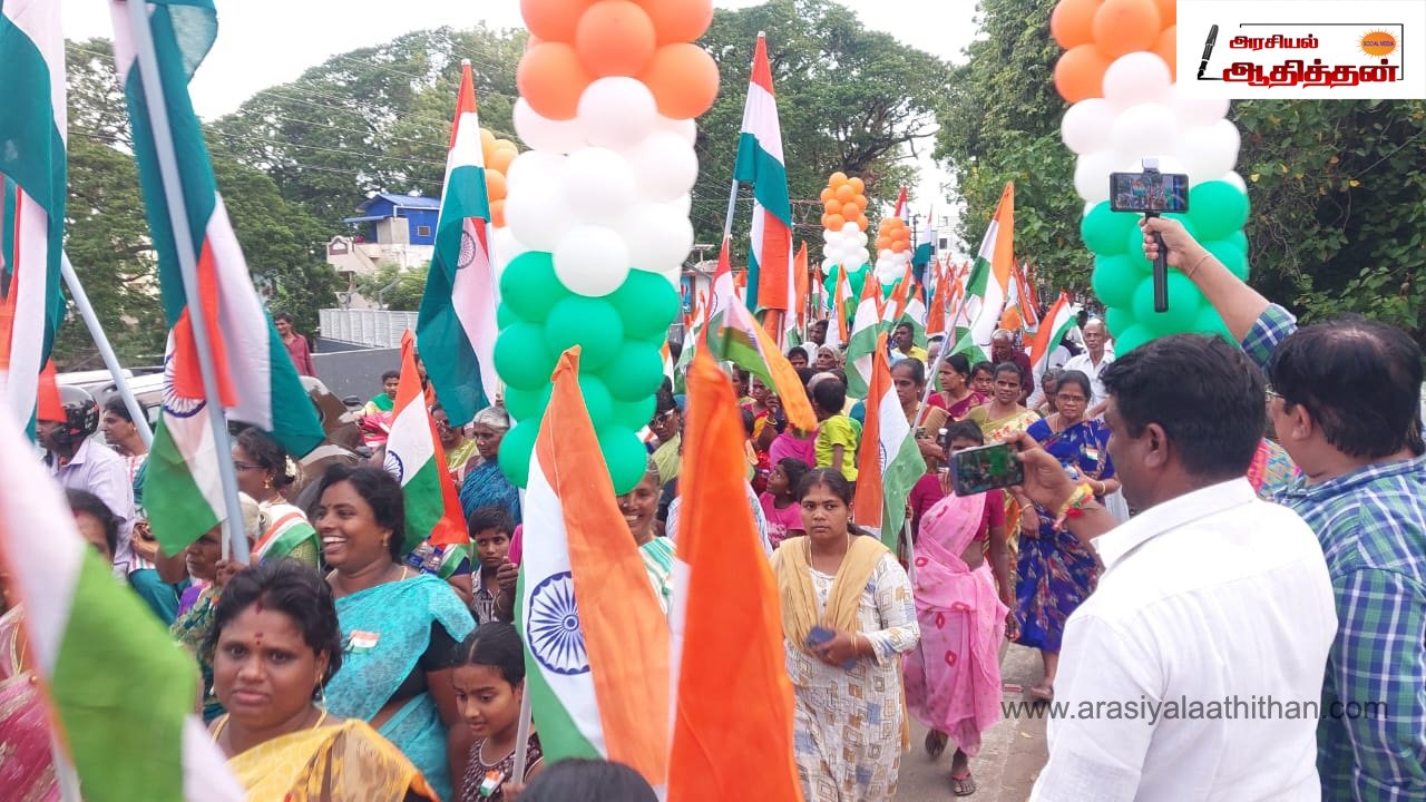 இதன் ஒரு பகுதியாக திருச்சி ஶ்ரீரங்கம் மண்டல பாரதிய ஜனதா கட்சியின் சார்பில் மாவட்ட தலைவர் ஒண்டி முத்து தலைமையில் மூவர்ணக் கொடியான தேசியக்கொடி ஏந்தி பேரணி நடைபெற்றது பேரணியை Dr.S.சிவசுப்ரமணியம் ( பார்வையாளர் மாநில இணை பொருளாளர்) துவக்கி வைத்தார்