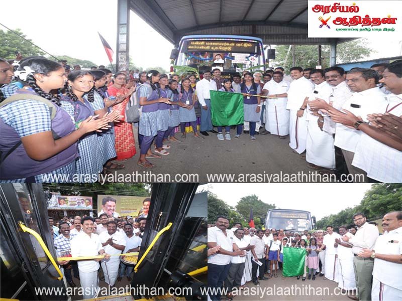 பள்ளி கல்லூரி மாணவர்களுக்காக தனியாக பேருந்து வசதியை துவக்கி வைத்து அமைச்சர்கள்.