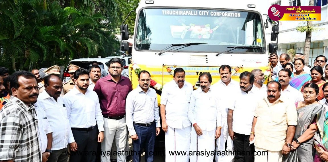 மாண்புமிகு நகராட்சி நிருவாகத் துறை அமைச்சர் திரு.கே.என்.நேரு அவர்கள் திருச்சிராப்பள்ளி மாநகராட்சி இயந்திரம் புதை வடிகால் வண்டியை கொடியசைத்து தொடங்கி வைத்தார்