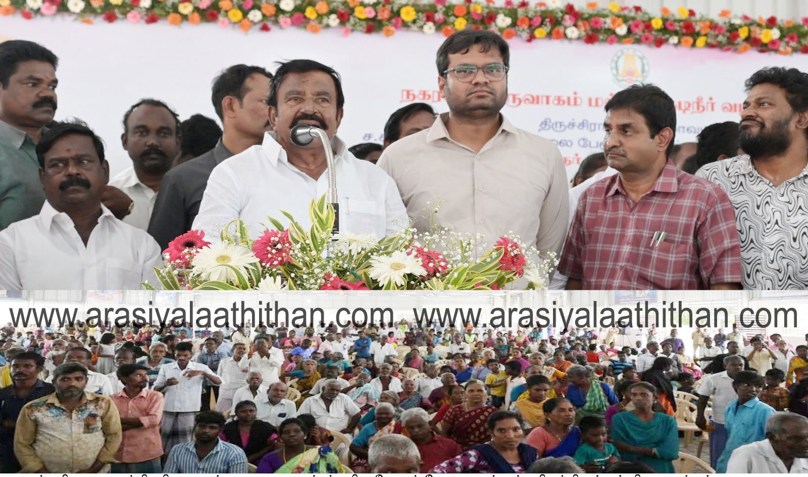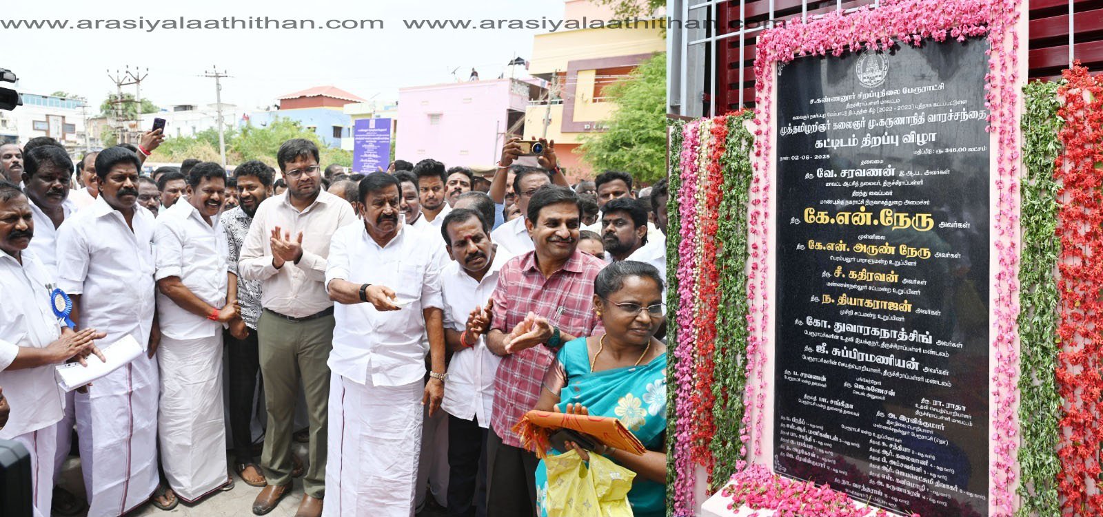 மாண்புமிகு நகராட்சி நிருவாகத்துறை அமைச்சர்  கே. என். நேரு  திருச்சிராப்பள்ளி மாவட்டம், எஸ்.கண்ணனூர் பேரூராட்சியில் இன்று (02.08.2025) நடைபெற்ற விழாவில் பாலகிருஷ்ணம்பட்டி, மண்ணச்சநல்லூர், தாத்தையங்கார்பேட்டை, சிறுகமணி, காட்டுப்புத்தூர், புள்ளம்பாடி ஆகிய 6 பேரூராட்சிகளில் ரூ.12.23 கோடி மதிப்பீட்டில் கட்டப்படவுள்ள 9 புதிய திட்டப்பணிகளுக்கு அடிக்கல் நாட்டி, ச.கண்ணனூர் மற்றும் சிறுகமணி ஆகிய 2 பொதுமக்களின் பயன்பாட்டிற்கு திறந்து வைத்து, சிறப்புரையாற்றினார்.