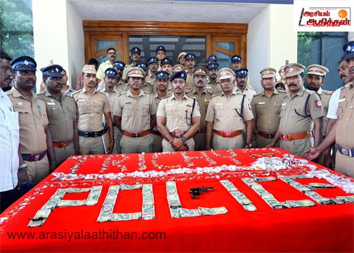 5) மேற்படி எதிரிகளை விசாரணை செய்து அவர்களிடமிருந்து வழக்கில் கொள்ளையடிக்கப்பட்ட 1) தங்க நகைகள் 6,234 kg, 2) தங்க கட்டிகள் -3.446 Kg (11 Pieces) என total 9.681 kg தங்கம், பணம் 3) 6,05,500, 4) Hyundai Venue Car-25 BH 40963, 5) பிஸ்டல் (நாட்டுத்துப்பாக்கி) -1 மற்றும் 2 தோட்டாக்கள், 6) ஸ்மார்ட் போன் 7, 7) பட்டன் போன் -1, 8) சிம் கார்டுகள் 40, 9) 100 ரூ பத்திரம்-2, 10) ஜூவல் டேக் -5, மற்றும் 11) விசிட்டிங் கார்டு 5 ஆகியவை கைப்பற்றப்பட்டது.