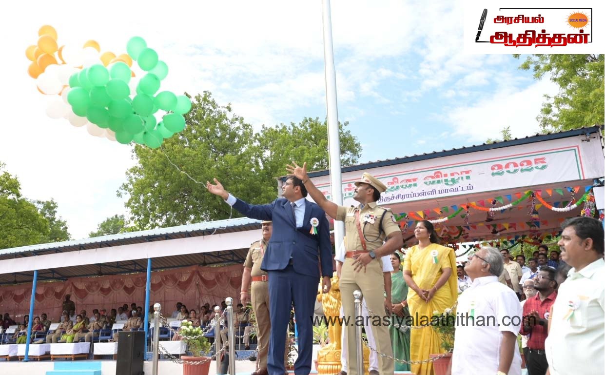 திருச்சிராப்பள்ளி மாவட்ட ஆயுதப்படை மைதானத்தில் மாவட்ட நிர்வாகத்தின் சார்பில் இன்று (15.08.2025) நடைபெற்ற சுதந்திரதின விழாவில் மாவட்ட ஆட்சித்தலைவர் சரவணன் அவர்கள் தேசியக் கொடியை ஏற்றி வைத்து காவல் துறையின் வாகனத்தில் அணிவகுப்பு மரியாதை ஏற்றுக்கொண்டார்.
