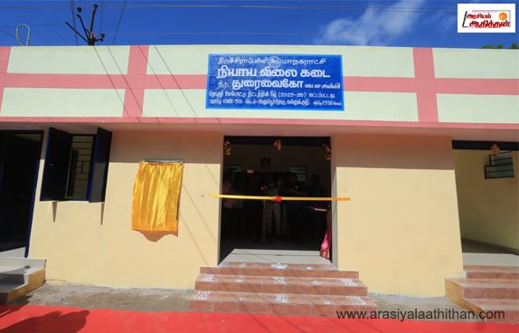 திருச்சி பாராளுமன்ற உறுப்பினர் துரை வைகோ தலைமையில் கீழ்காணும் பணிகளை அமைச்சர் அன்பில் மகேஸ் பொய்யாமொழி திறந்து வைத்தார்59_வது வார்டு கல்லுக்குழி பகுதியில் புதிதாக கட்டப்பட்ட நியாய விலை கடையினையும், 47_வது வார்டு சுப்பிரமணிய பகுதியில் புதிதாக கட்டப்பட்ட ஒருங்கிணைந்த குழந்தைகள் மேம்பாட்டு மையத்தினையும்,50-வது வார்டு காஜா பேட்டை பகுதியில் புதிதாக கட்டப்பட்ட நியாய விலை கடையினையும்,17_வது வார்டு அண்ணா நகரில் புதிதாக கட்டப்பட்ட நியாய விலை கடை கட்டிடம், ஆகியவை மக்களின் தேவைகளுக்காக திறந்து வைக்கப்பட்டது.