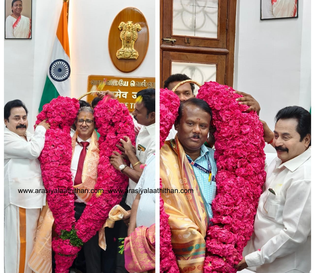 வட நாட்டிலே அவர் பார்த்திருக்கா வண்ணம் மிகப்பிரமாண்ட ஆள்உயர ரோஜா பூ மாலை அணிவித்து சால்வை அணிவித்து