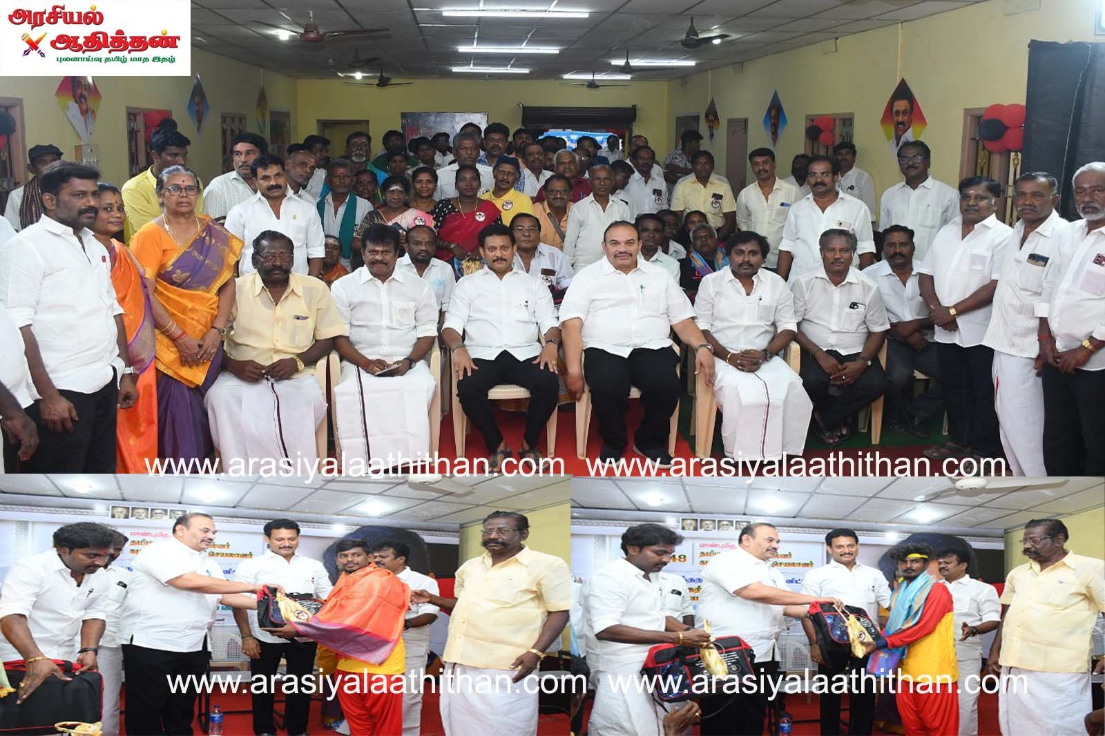 கழக இளைஞரணிச் செயலாளர் – மாண்புமிகு துணை முதலமைச்சர் உதயநிதி ஸ்டாலின் அவர்களின் பிறந்தநாளையொட்டி திருச்சி தெற்கு மாவட்ட தி.மு.க சார்பிலான #DCM48 தொடர் நிகழ்ச்சிகளில் 20வது நிகழ்வாக, மாவட்ட மற்றும் கிழக்கு மாநகர கலை, இலக்கிய பகுத்தறிவுப் பேரவை சார்பில் நலிந்த நாடக மற்றும் நாட்டுப்புற கலைஞர்களுக்கு பணமுடிப்பு மற்றும் நலத்திட்ட உதவிகள் வழங்கும் விழா திருச்சி பொன்மலைப்பட்டி பகுதியில் உள்ள தனியார் திருமண மண்டபத்தில் நடைபெற்றது. வரவேற்புரை மாவட்ட கலை இலக்கிய பகுத்தறிவு பேரவை தலைவர் கா மணிமாறன் ஆற்றினார்