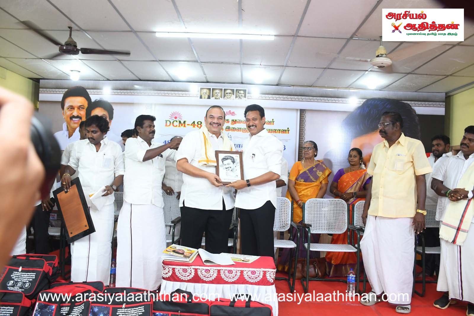 கழக இளைஞரணிச் செயலாளர் – மாண்புமிகு துணை முதலமைச்சர் உதயநிதி ஸ்டாலின் அவர்களின் பிறந்தநாளையொட்டி திருச்சி தெற்கு மாவட்ட தி.மு.க சார்பிலான #DCM48 தொடர் நிகழ்ச்சிகளில் 20வது நிகழ்வாக, மாவட்ட மற்றும் கிழக்கு மாநகர கலை, இலக்கிய பகுத்தறிவுப் பேரவை சார்பில் நலிந்த நாடக மற்றும் நாட்டுப்புற கலைஞர்களுக்கு பணமுடிப்பு மற்றும் நலத்திட்ட உதவிகள் வழங்கும் விழா திருச்சி பொன்மலைப்பட்டி பகுதியில் உள்ள தனியார் திருமண மண்டபத்தில் நடைபெற்றது. வரவேற்புரை மாவட்ட கலை இலக்கிய பகுத்தறிவு பேரவை தலைவர் கா மணிமாறன் ஆற்றினார்